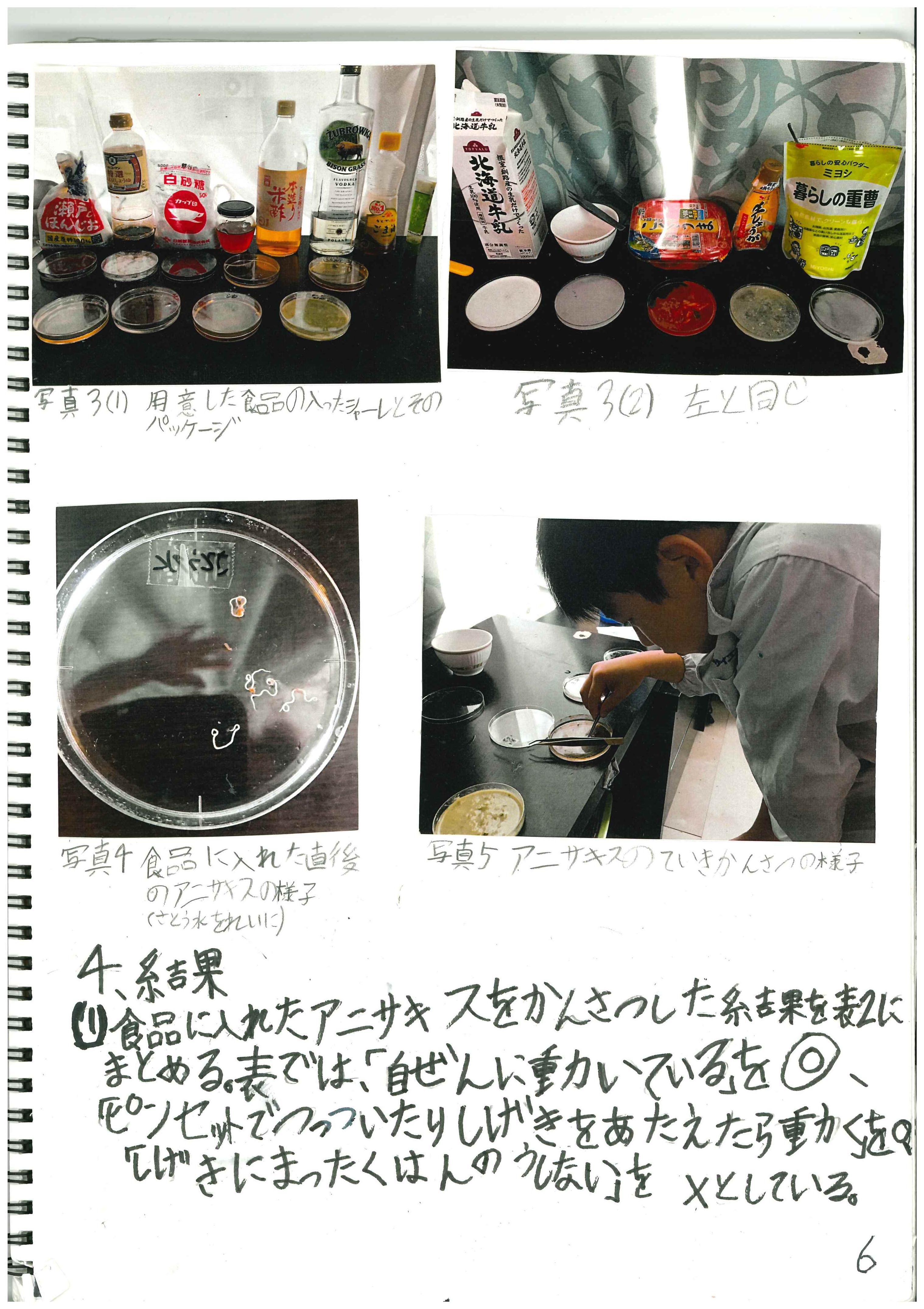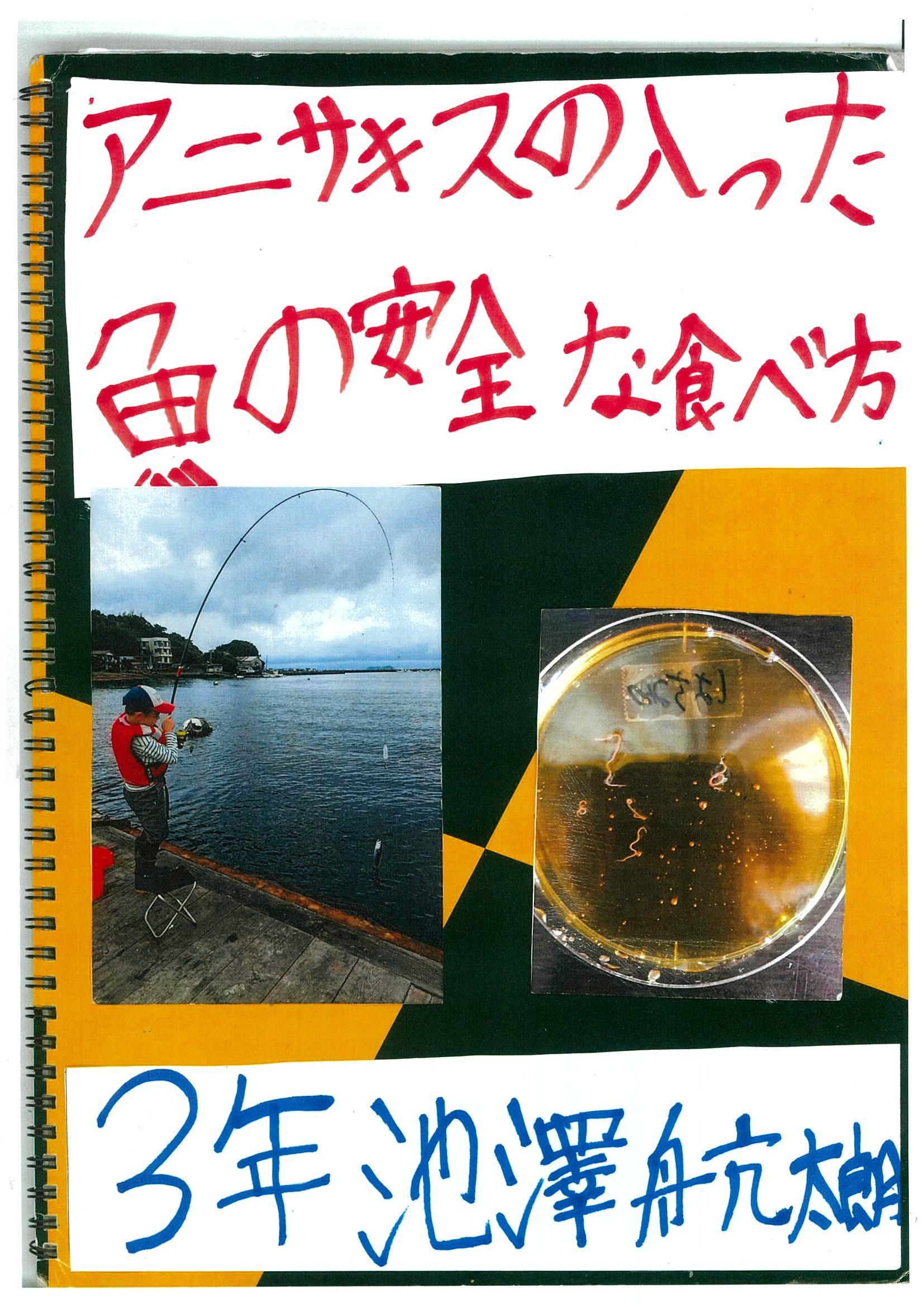 | 農林水産大臣賞 | アニサキスの入った魚の安全な食べ方 | 自由研究 | 池澤 航太朗 | 3 |