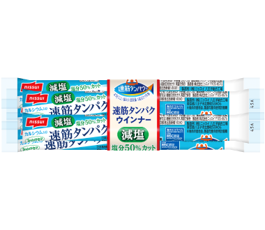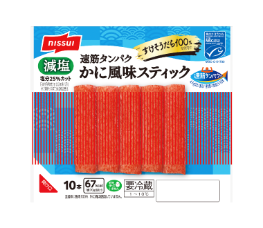 「速筋タンパク」のマークがついているニッスイ商品は、製品100g当たり8.1g以上のタンパク質を含み、1食当たり4.5g以上のスケソウダラのタンパク質が摂取できます。