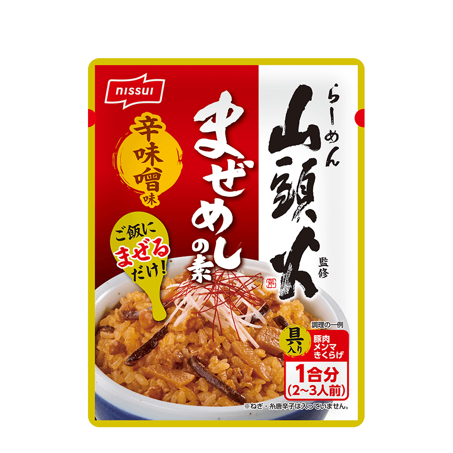 - 人気のラーメン店「らーめん山頭火」監修の辛味噌味のまぜめしの素です。