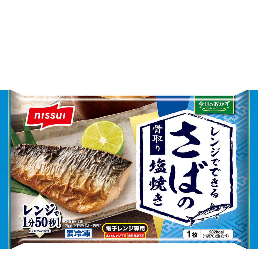 - 食卓のおかずにぴったりの、個食タイプ(1枚入り)のサバの塩焼きです。