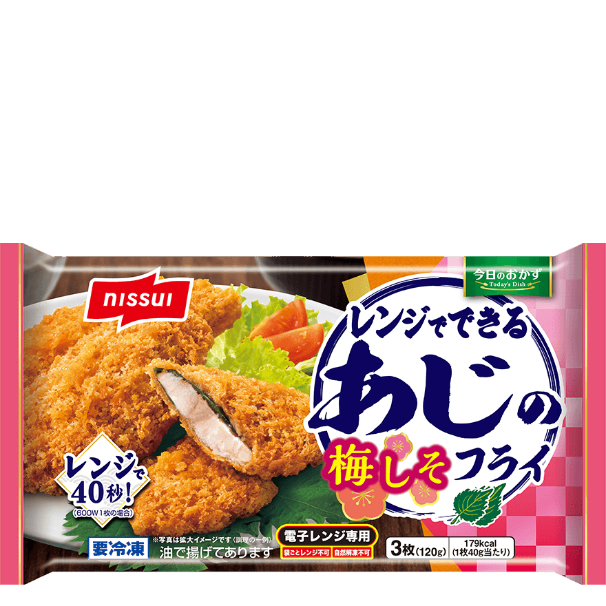 - 電子レンジ調理で、揚げたてのようなサクッと軽い衣のフライが味わえます。
