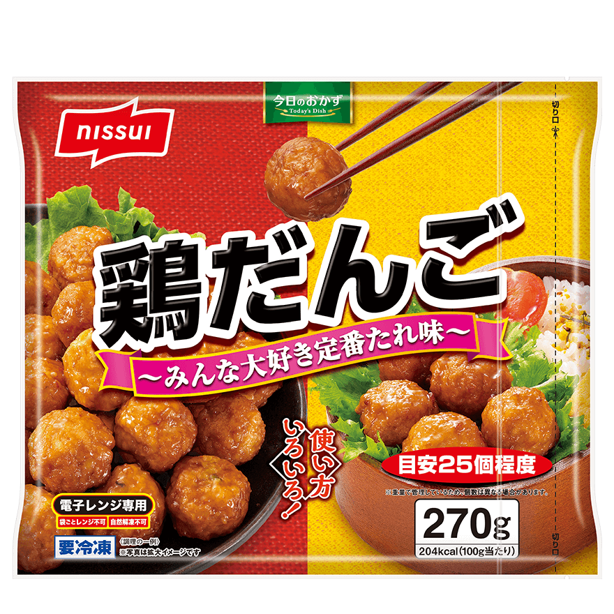- 食卓やお弁当の一品に、必要な分だけ使いやすい鶏だんごです。