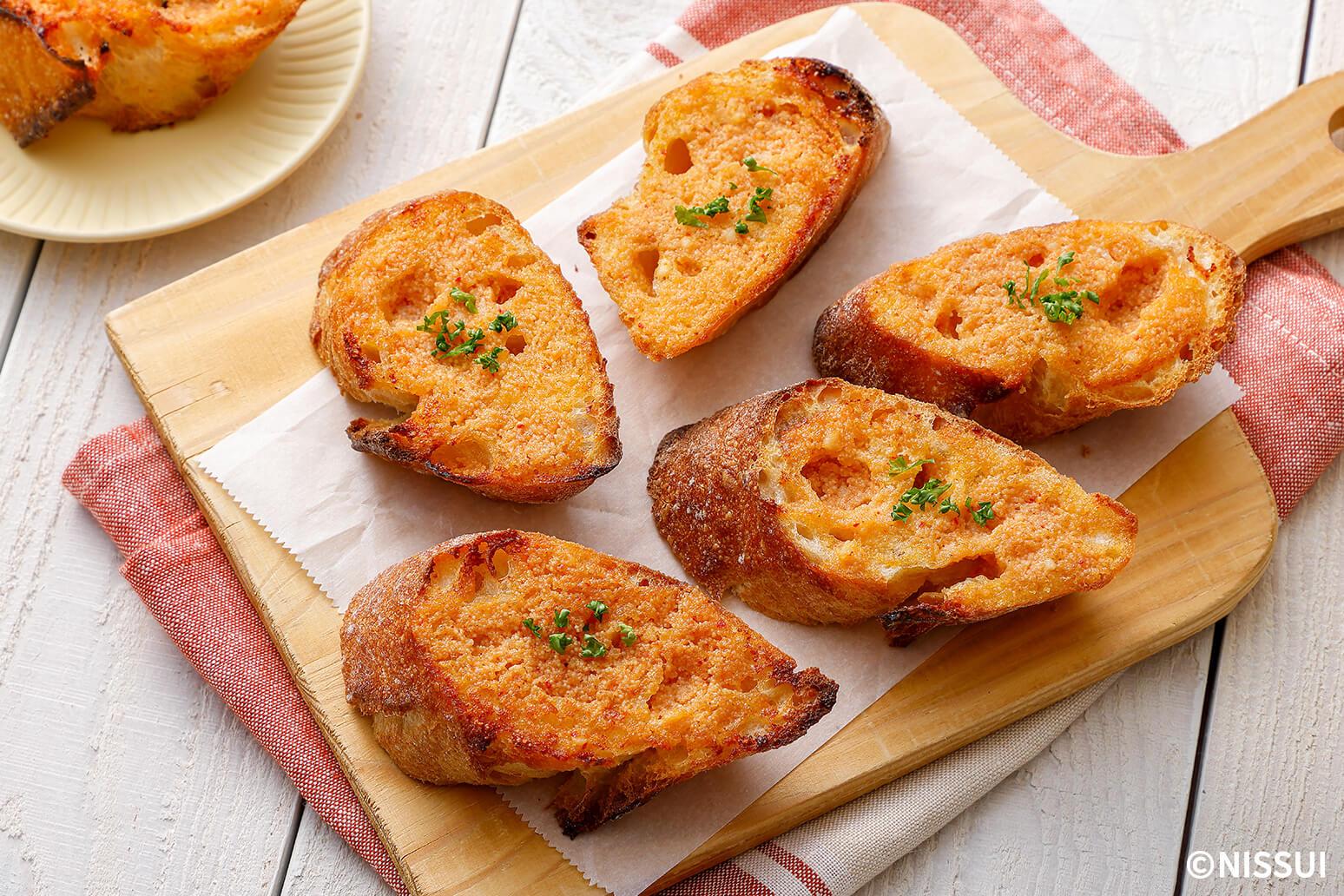 明太子と香ばしいガーリックがたまらない、贅沢な1品。おもてなしや、おつまみにもぴったりです。