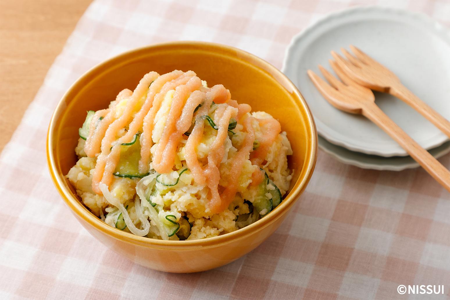味付けはマヨネーズと塩のみでシンプルに仕上げたポテトサラダ。たらこの旨みをしっかりと味わえます。