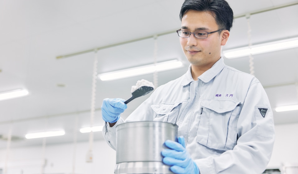 お客さまの生活を豊かにする、新しい価値を生み出す仕事です。お客さまの視点に立ち、商品を手にする人に寄り添いながら、高い価値と機能を持つ商品の創造を目指しています。営業・販売部門からの要望に基づいて研究テーマに取り組むケースと、研究部門から基礎研究をもとに新たな商品アイデアを提案する場合もあります。