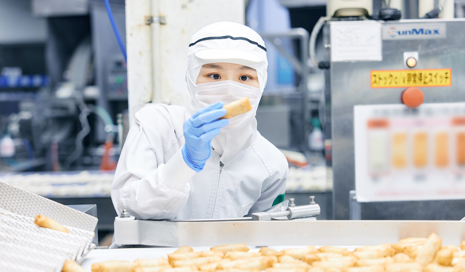 商品の安定した生産を支える管理業務を担当します。工場の現場で「ヒト・モノ・カネ」を管理し、本社を拠点として国内外の各工場と連携して生産状況を把握します。また、製造した商品の品質管理や、工場など生産設備の衛生管理、原料の仕入れ先への指導や品質管理サポートにも携わります。