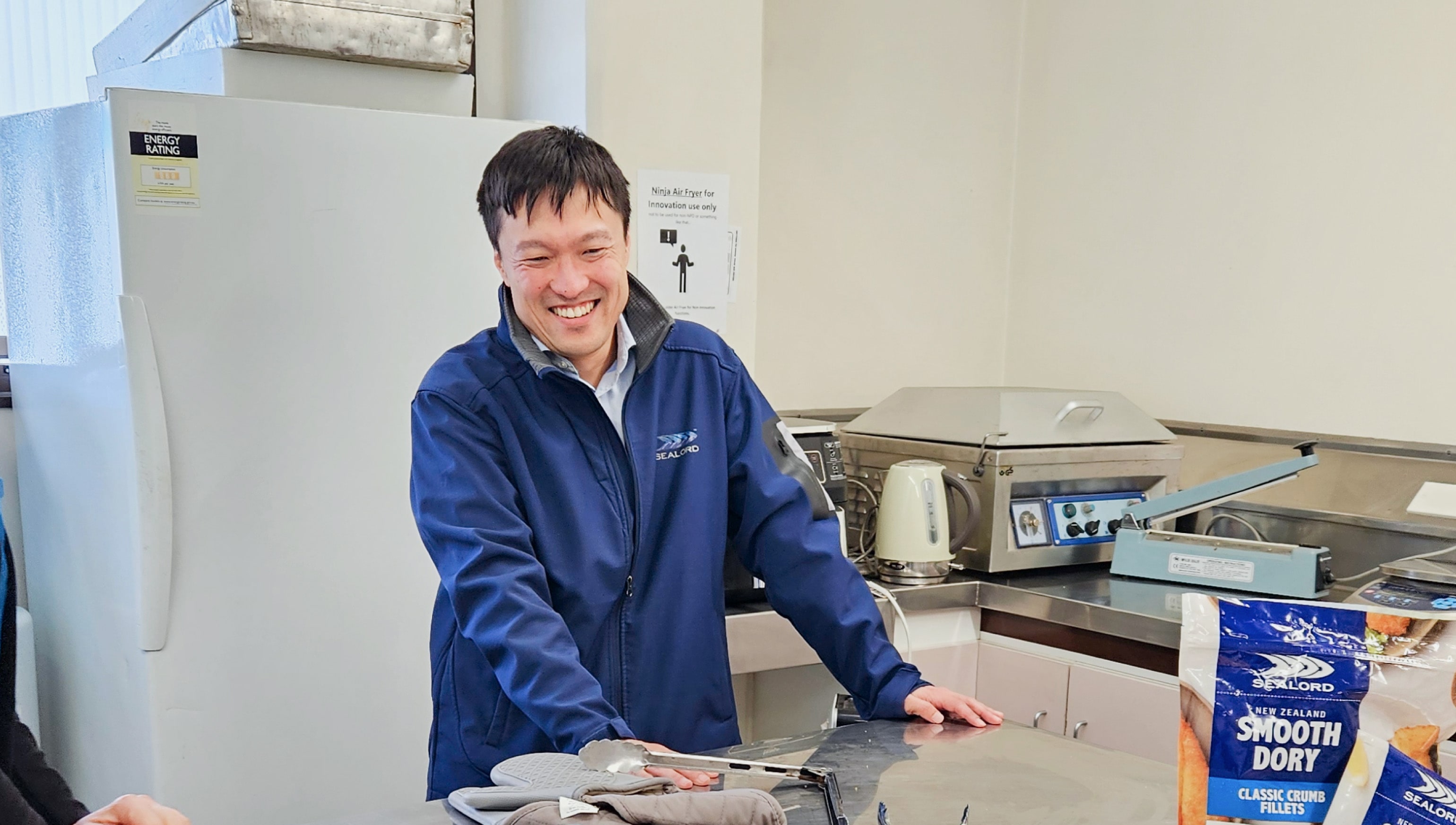 シーロード社はニュージーランド最大の水産会社で、ニッスイのグループ会社の一つです。私はニッスイからの唯一の出向者として、シーロード社にどのように貢献して信頼関係を築くかを模索する毎日です。現地では、日本市場向けの販売サポートや水産物の加工残渣の活用プロジェクト、現地企業との情報交換、ニッスイ本社への事業報告・資料作成、本社各部署からの依頼・問い合わせに対する窓口役、出張者のアテンドなど多岐にわたる業務に取り組んでいます。ここでの仕事は、サステナビリティや漁業オペレーション、財務・投資管理、広報など、すりみ課時代には経験しなかった分野ばかりです。