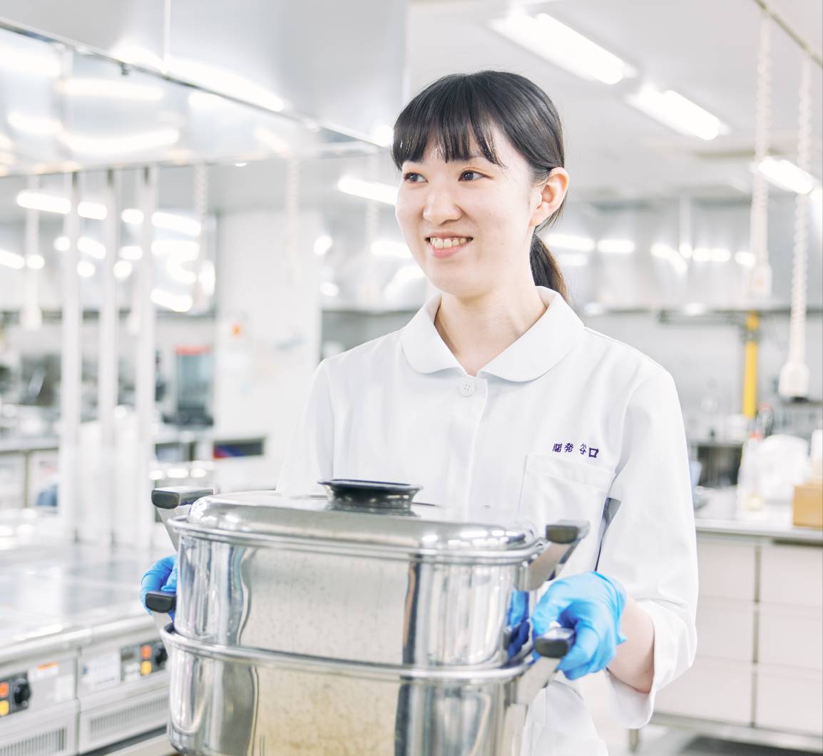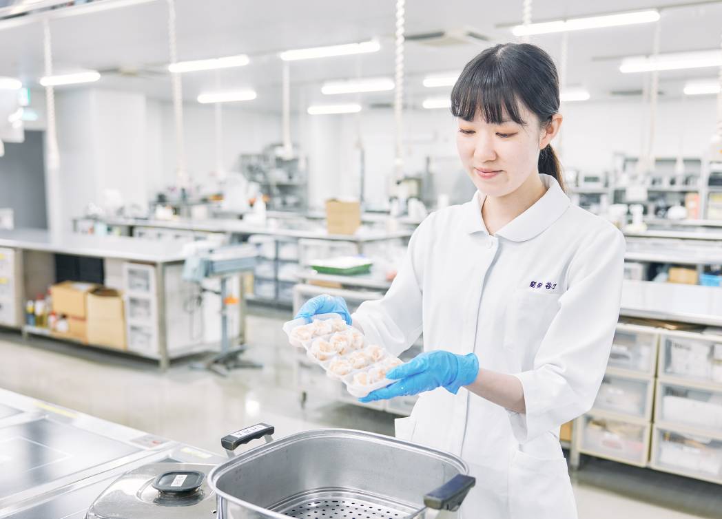 研究職 研究 基礎、応用研究シューマイや焼きおにぎりなど、冷凍食品の品質向上に取り組む。