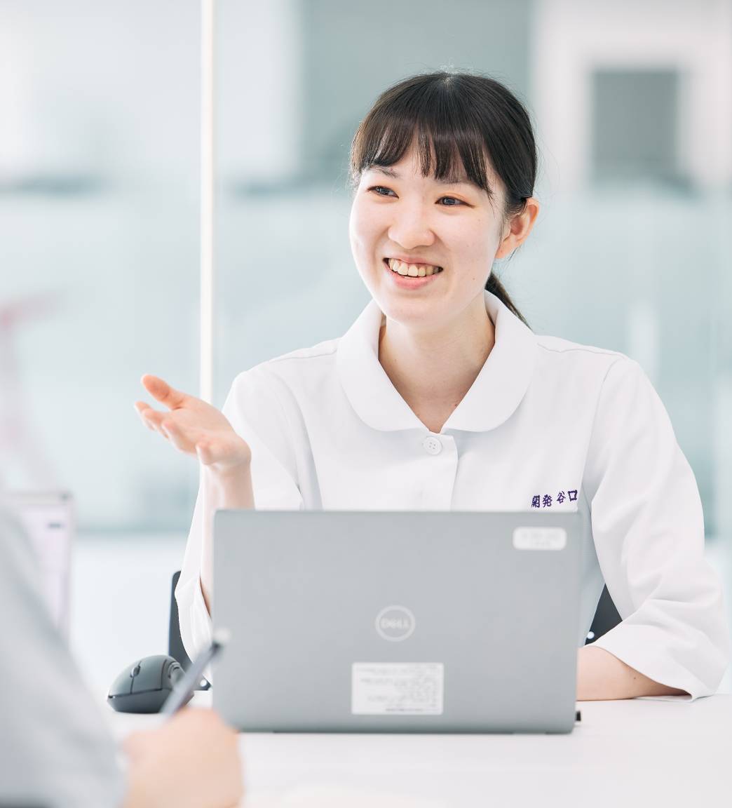 研究職で入社すると研究のキャリアしか選べない会社もありますが、当社ではキャリア申告制度の中で、研究職以外の職種・部署で活躍したいという想いを伝えることができます。また、やりたいことを積極的に発信すれば、自ら可能性を広げられるのも、当社の魅力だと思います。私も興味のあったマーケティングのプロジェクトや、データサイエンスの仕事も関わったことがありますし、いろいろなことに興味がある人には、面白い会社だと思います。