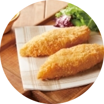 冷凍白身魚フライの製造・販売を行う会社で、量販店を含めた小売および外食・給食など業務用に幅広く販売しています。