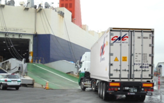 商船三井フェリーのRORO船に乗り込む、キャリーネットの専用車両