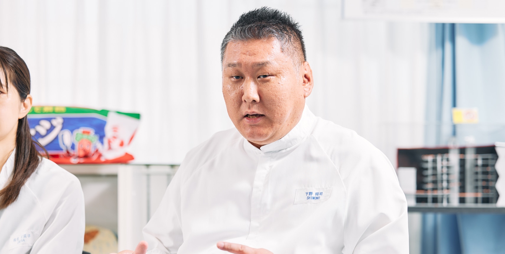 下野:入社当初は中央研究所で調味料に関わる基盤研究をしていました。開発した新商品を関係部署の方々と立ち上げる際の経験から品質保証部に興味を持ち異動しました。その後、タイを中心とした東南アジア圏の協力工場で生産する冷凍調理食品や冷凍農産品、缶詰などの品質改善のために5年間タイに駐在。帰国後は現在の加工食品第二工場のソーセージ工場長に着任しました。