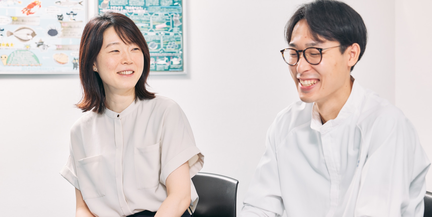 梅名:私は新入社員の時にいきなり「水産事業部門の社員を対象に研修を行うから、品質保証に関する資料を作って」と言われて。勉強しないと資料は作れないです。だからこそ、自ら学ぶ意欲が生まれました。