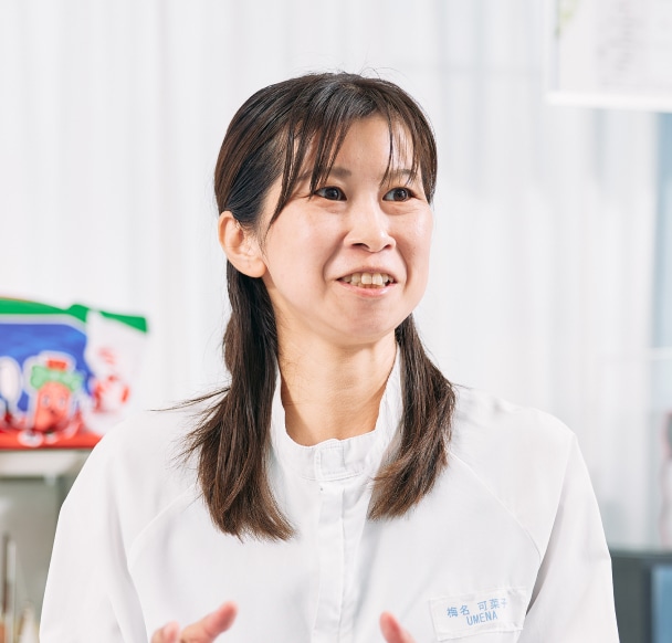梅名:私の場合、入社から13年間は本社の品質保証部に在籍していました。工場での業務を経験したいという希望がかない、6年前から工場の品質管理や生産管理を担当しています。2025年から冷凍食品工場の工場長補佐になりました。